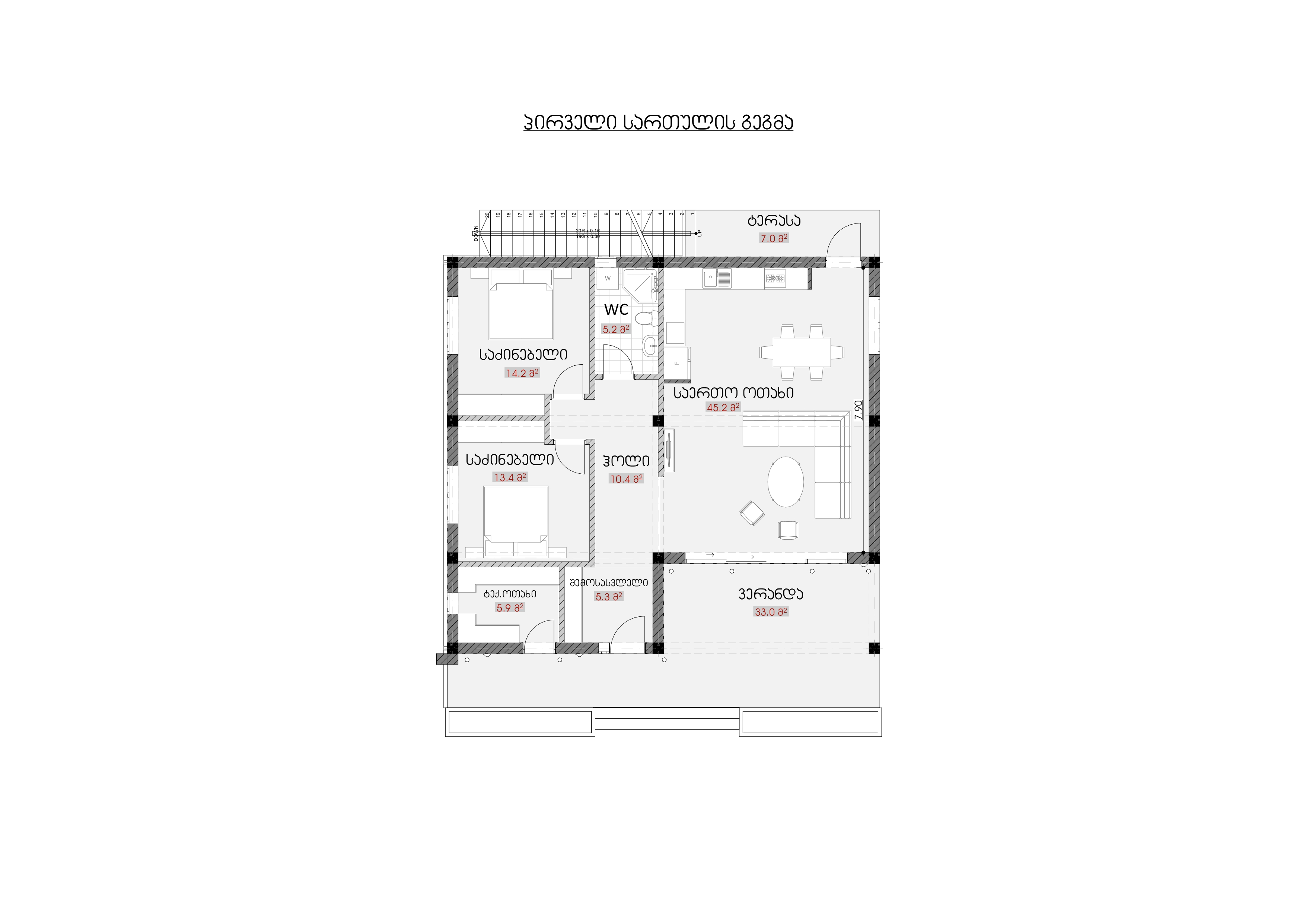 თანამედროვე ერთსართულიანი საცხოვრებელი/სააგარაკე ტიპის ოთხბინიანი სახლი, მოცემული პროექტი მოიცავს, ტოპოგრაფიას, გეოლოგიას,აზომვით ნახაზებს, მშენებლობის ნებართვის აღებას, პროექტის მომზადება-შეთანხმებას, კონსტრუქციულ ნახაზებს, ენერგო და წყალგაყვანილობის გეგმებს, შესაბამის მუნიციპალურ სამსახურებში თქვენს წარმომადგენლობას.