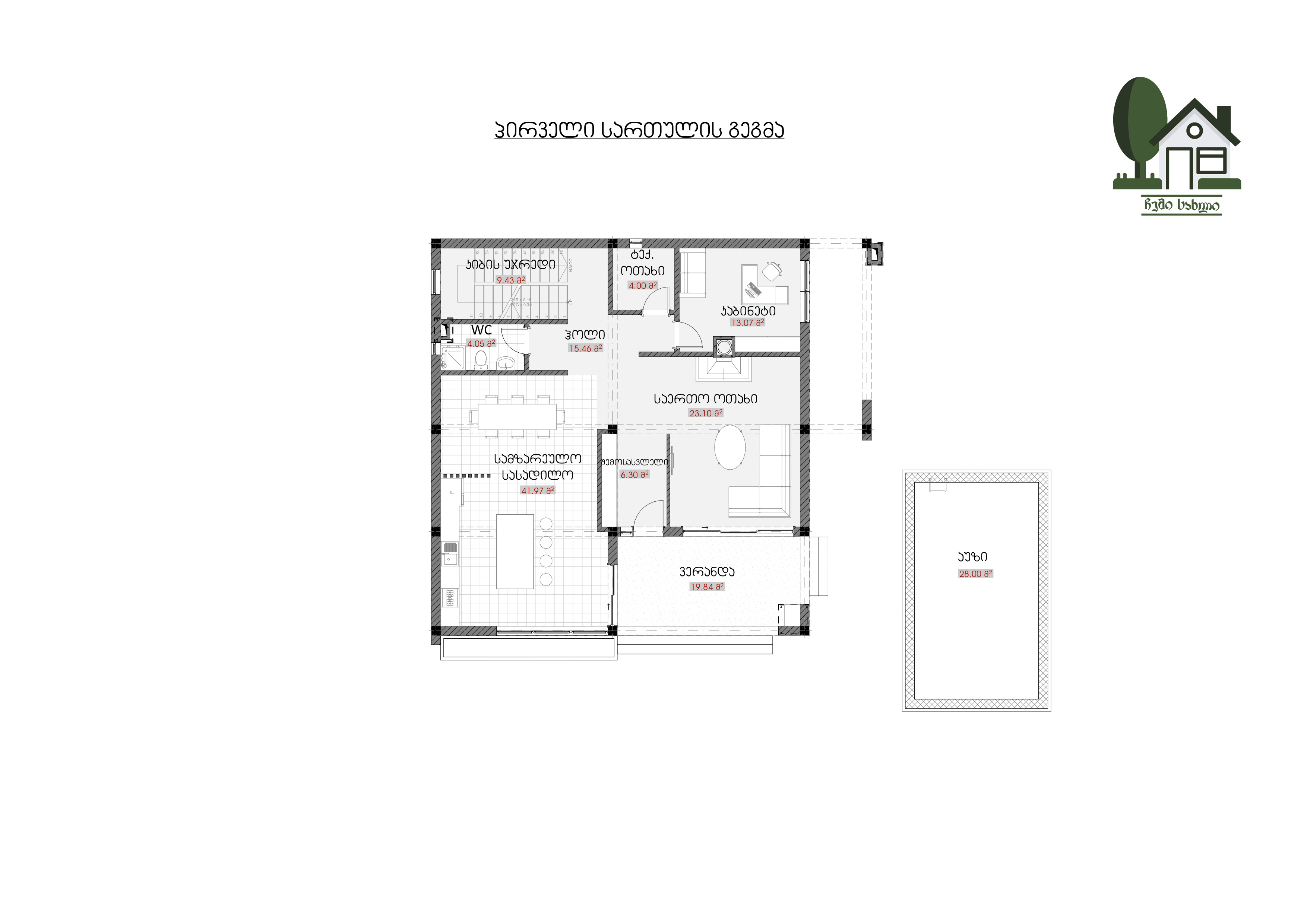 თანამედროვე ორსართულიანი საცხოვრებელი/სააგარაკე ტიპის ოთხბინიანი სახლი, მოცემული პროექტი მოიცავს, ტოპოგრაფიას, გეოლოგიას,აზომვით ნახაზებს, მშენებლობის ნებართვის აღებას, პროექტის მომზადება-შეთანხმებას, კონსტრუქციულ ნახაზებს, ენერგო და წყალგაყვანილობის გეგმებს, შესაბამის მუნიციპალურ სამსახურებში თქვენს წარმომადგენლობას.