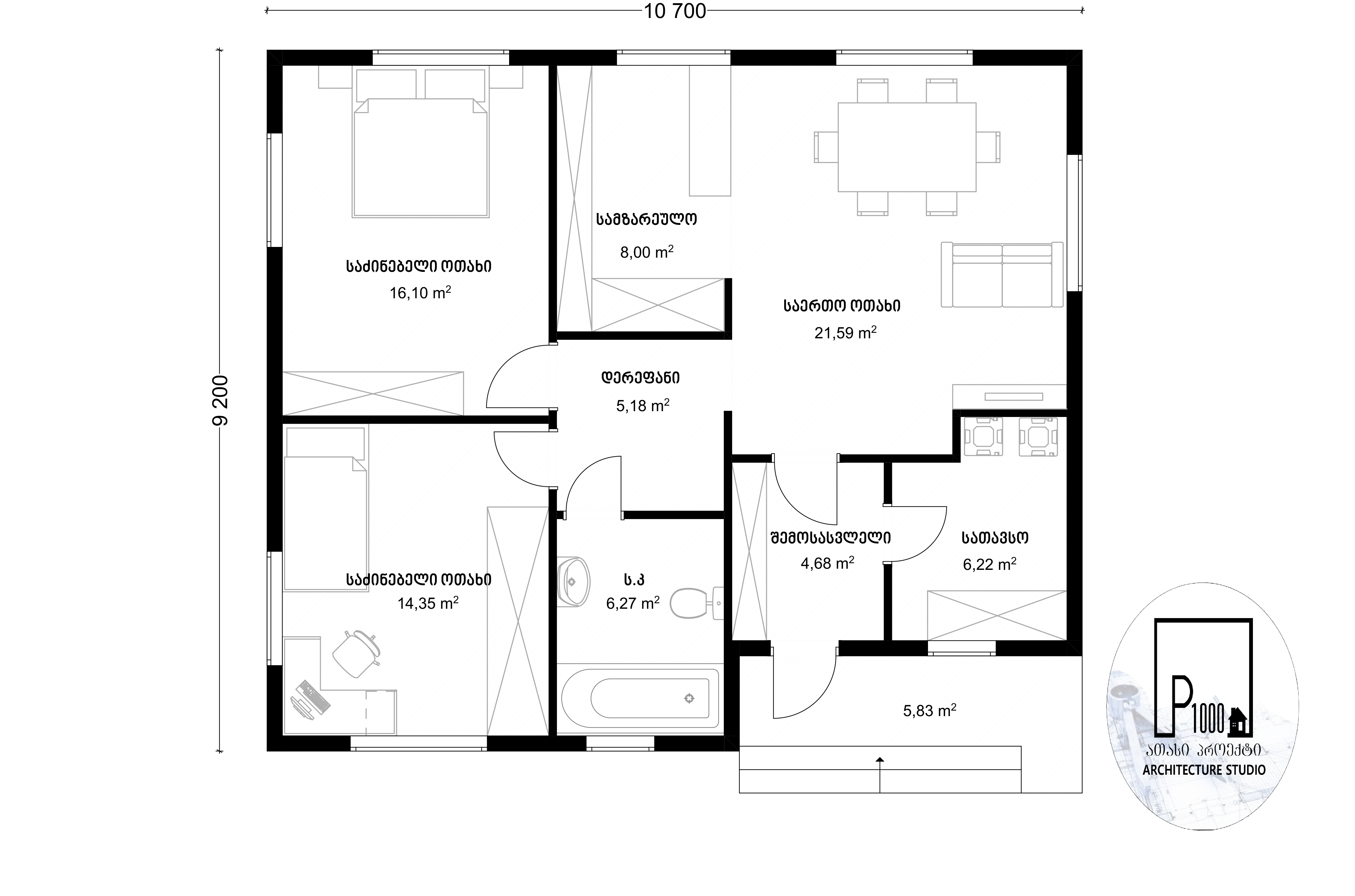 თანამედროვე ერთსართულიანი საცხოვრებელი/სააგარაკე ტიპის ინდივიდუალური სახლი, მოცემული პროექტი მოიცავს, ტოპოგრაფიას, გეოლოგიას,აზომვით ნახაზებს, მშენებლობის ნებართვის აღებას, პროექტის მომზადება-შეთანხმებას, კონსტრუქციულ ნახაზებს, ენერგო და წყალგაყვანილობის გეგმებს, შესაბამის მუნიციპალურ სამსახურებში თქვენს წარმომადგენლობას.