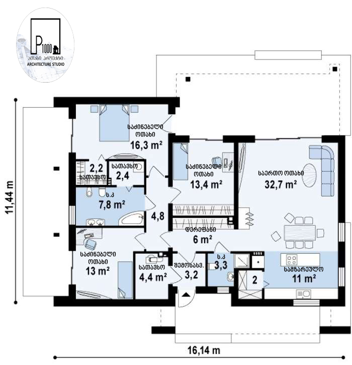თანამედროვე ერთსართულიანი საცხოვრებელი/სააგარაკე ტიპის ინდივიდუალური სახლი, მოცემული პროექტი მოიცავს, ტოპოგრაფიას, გეოლოგიას,აზომვით ნახაზებს, მშენებლობის ნებართვის აღებას, პროექტის მომზადება-შეთანხმებას, კონსტრუქციულ ნახაზებს, ენერგო და წყალგაყვანილობის გეგმებს, შესაბამის მუნიციპალურ სამსახურებში თქვენს წარმომადგენლობას
