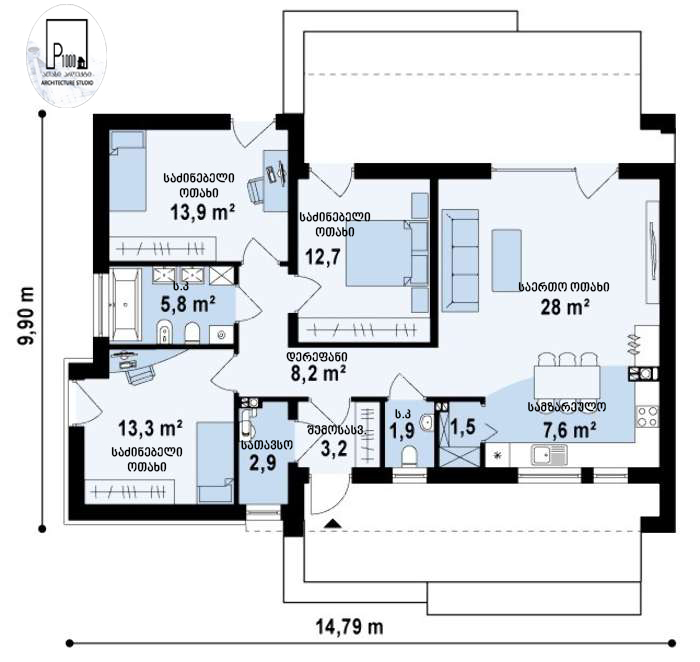 თანამედროვე ერთსართულიანი საცხოვრებელი/სააგარაკე ტიპის ინდივიდუალური სახლი, მოცემული პროექტი მოიცავს, ტოპოგრაფიას, გეოლოგიას,აზომვით ნახაზებს, მშენებლობის ნებართვის აღებას, პროექტის მომზადება-შეთანხმებას, კონსტრუქციულ ნახაზებს, ენერგო და წყალგაყვანილობის გეგმებს, შესაბამის მუნიციპალურ სამსახურებში თქვენს წარმომადგენლობას