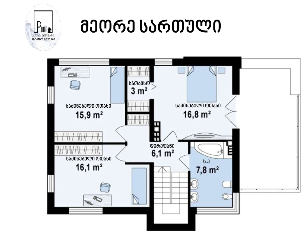 თანამედროვე ორსართულიანი საცხოვრებელი/სააგარაკე ტიპის ინდივიდუალური სახლი, მოცემული პროექტი მოიცავს, ტოპოგრაფიას, გეოლოგიას,აზომვით ნახაზებს, მშენებლობის ნებართვის აღებას, პროექტის მომზადება-შეთანხმებას, კონსტრუქციულ ნახაზებს, ენერგო და წყალგაყვანილობის გეგმებს, შესაბამის მუნიციპალურ სამსახურებში თქვენს წარმომადგენლობას.