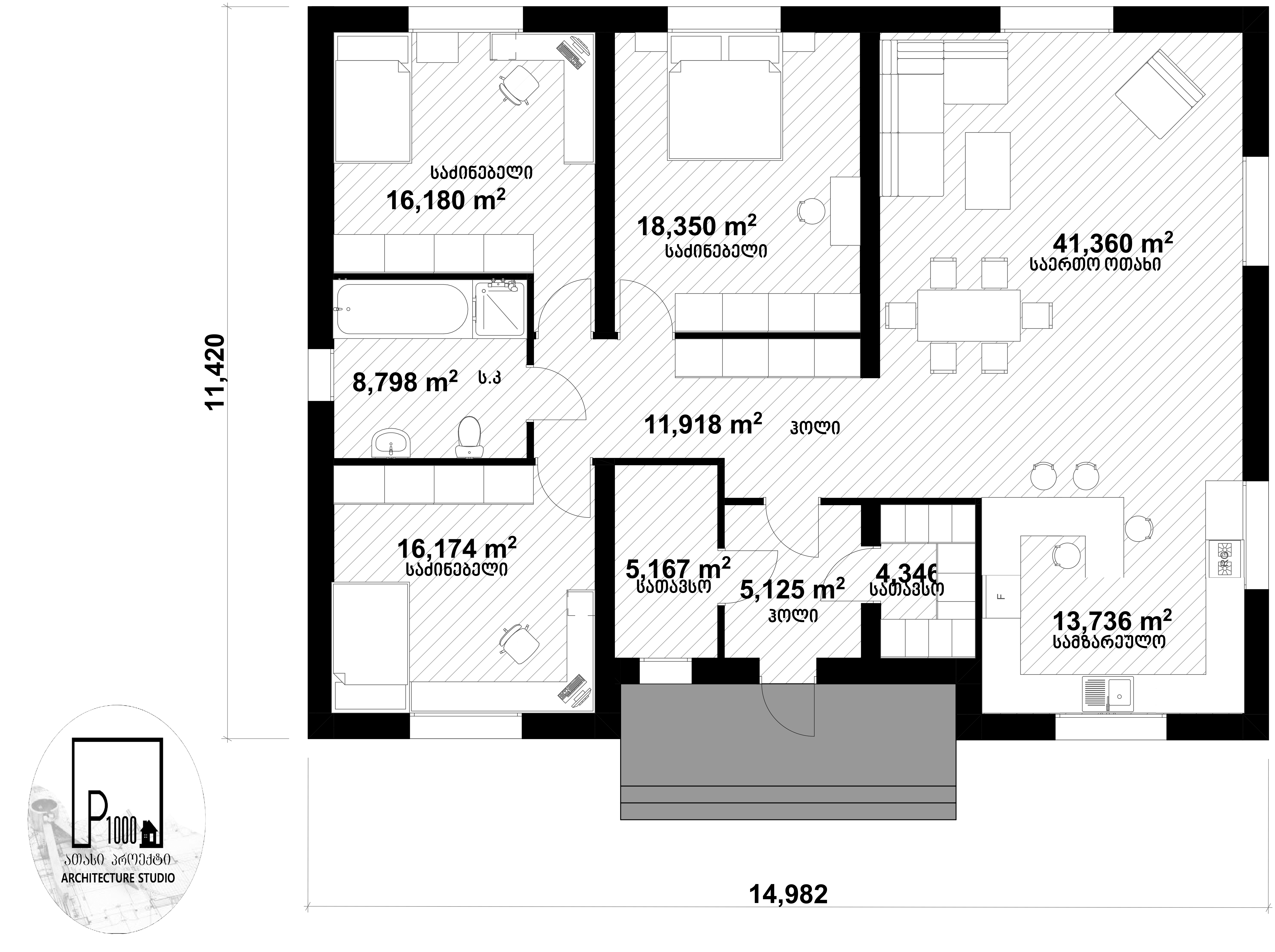 თანამედროვე ერთსართულიანი საცხოვრებელი/სააგარაკე ტიპის ინდივიდუალური სახლი, მოცემული პროექტი მოიცავს, ტოპოგრაფიას, გეოლოგიას,აზომვით ნახაზებს, მშენებლობის ნებართვის აღებას, პროექტის მომზადება-შეთანხმებას, კონსტრუქციულ ნახაზებს, ენერგო და წყალგაყვანილობის გეგმებს, შესაბამის მუნიციპალურ სამსახურებში თქვენს წარმომადგენლობას.