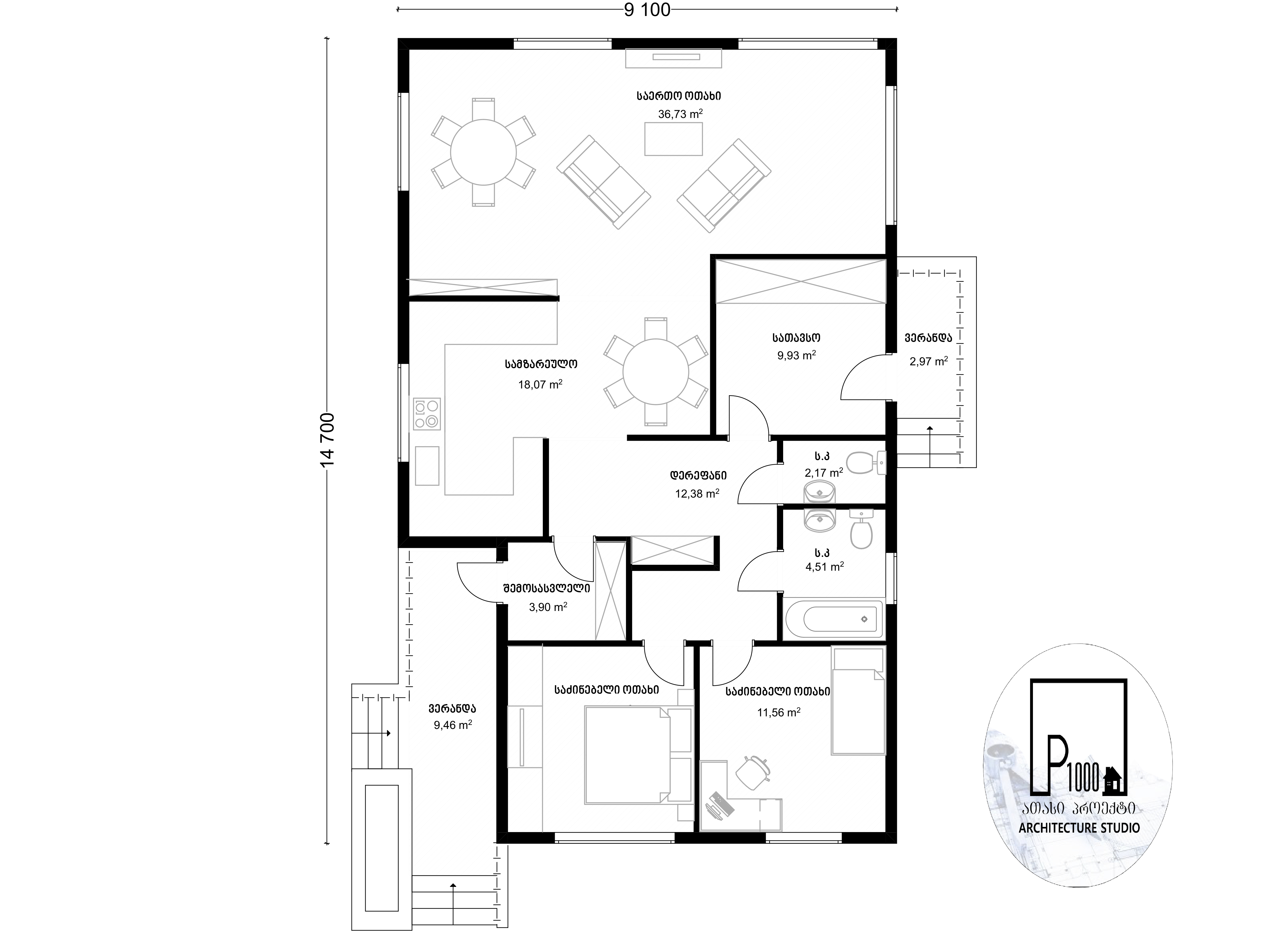 ​​​​​​​თანამედროვე ერთსართულიანი საცხოვრებელი/სააგარაკე ტიპის ინდივიდუალური სახლი, მოცემული პროექტი მოიცავს, ტოპოგრაფიას, გეოლოგიას,აზომვით ნახაზებს, მშენებლობის ნებართვის აღებას, პროექტის მომზადება-შეთანხმებას, კონსტრუქციულ ნახაზებს, ენერგო და წყალგაყვანილობის გეგმებს, შესაბამის მუნიციპალურ სამსახურებში თქვენს წარმომადგენლობას