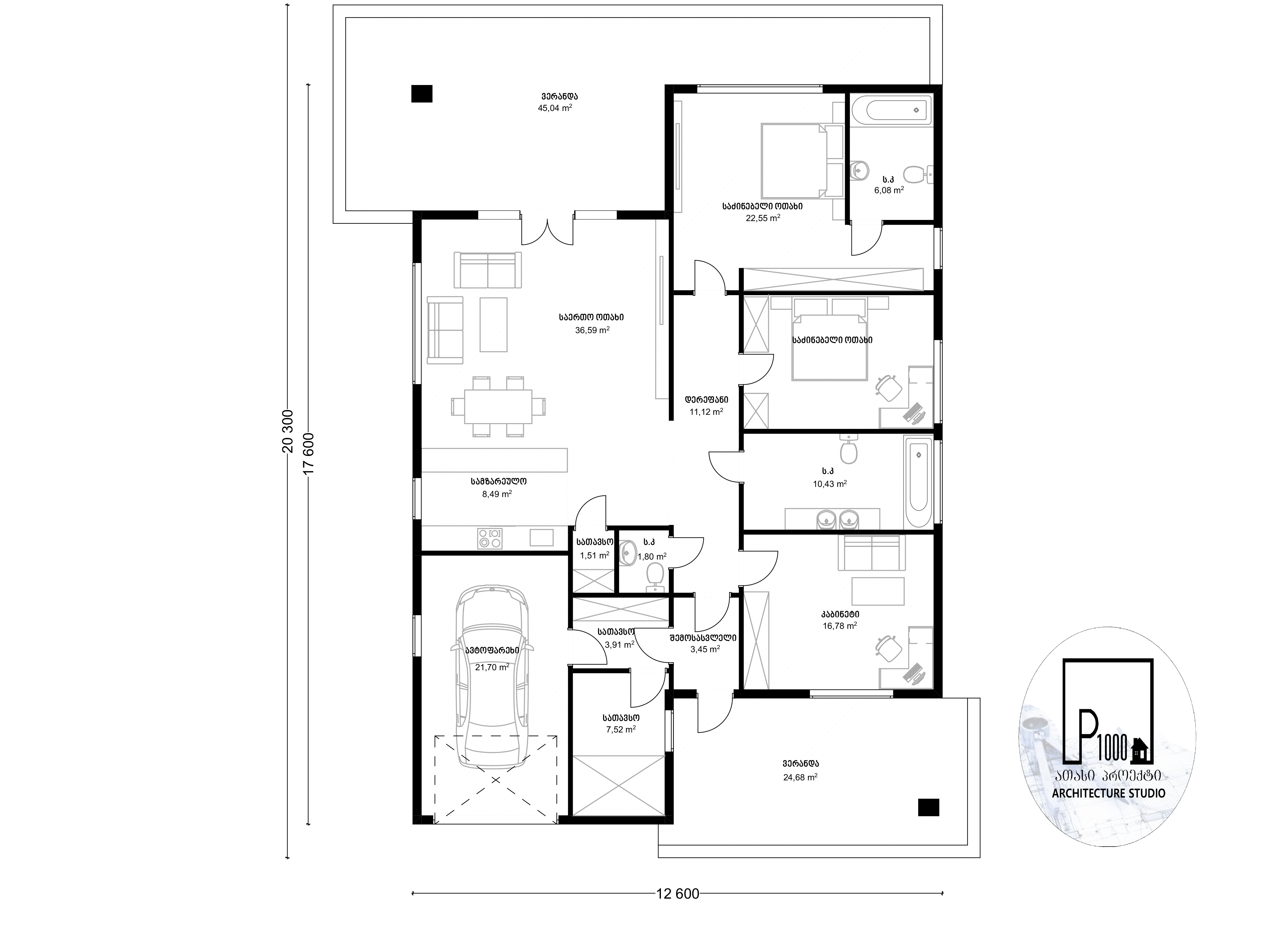 ​​​​​​​თანამედროვე ერთსართულიანი საცხოვრებელი/სააგარაკე ტიპის ინდივიდუალური სახლი, მოცემული პროექტი მოიცავს, ტოპოგრაფიას, გეოლოგიას,აზომვით ნახაზებს, მშენებლობის ნებართვის აღებას, პროექტის მომზადება-შეთანხმებას, კონსტრუქციულ ნახაზებს, ენერგო და წყალგაყვანილობის გეგმებს, შესაბამის მუნიციპალურ სამსახურებში თქვენს წარმომადგენლობას