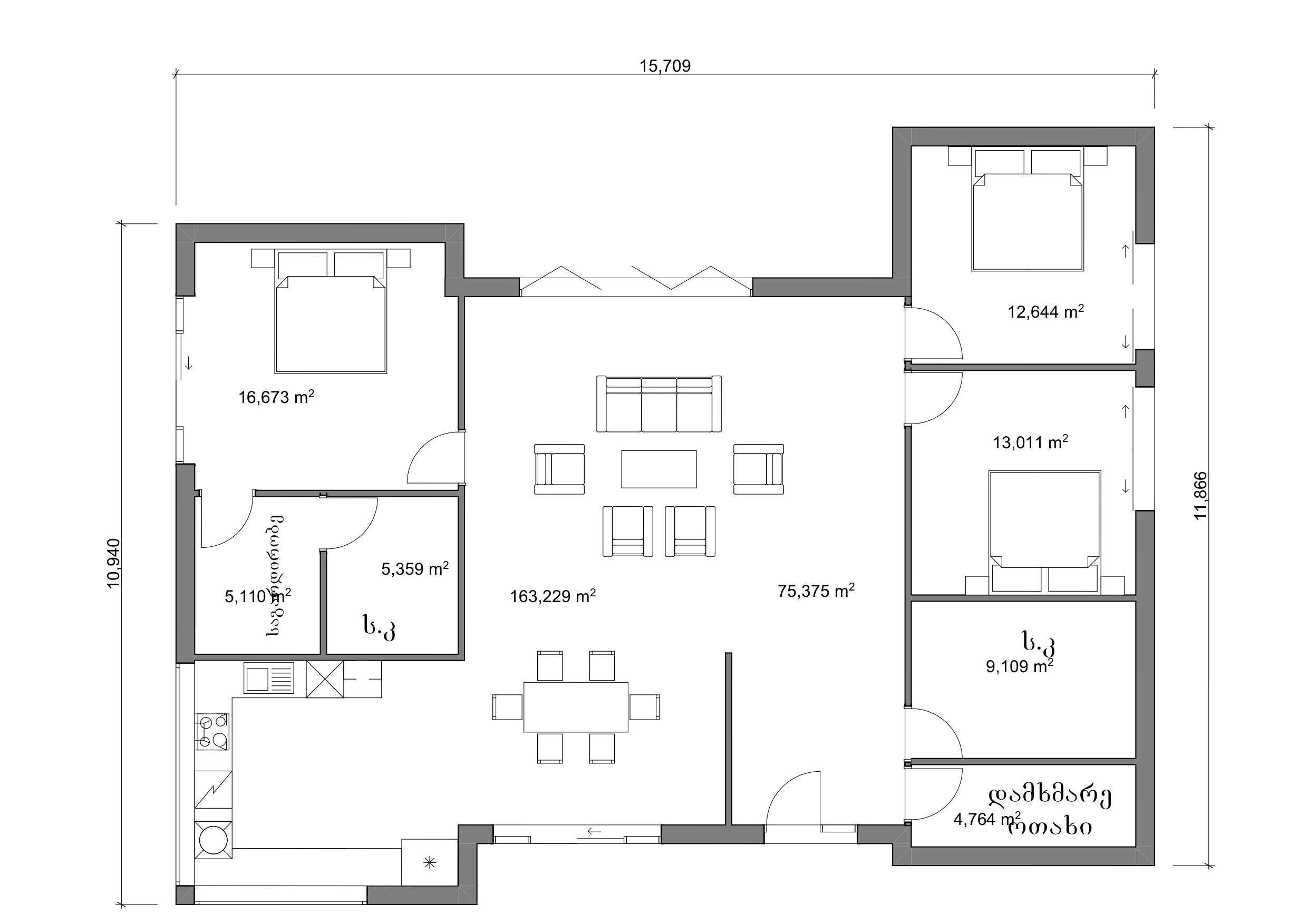 თანამედროვე ერთსართულიანი საცხოვრებელი/სააგარაკე ტიპის ინდივიდუალური სახლი, მოცემული პროექტი მოიცავს, ტოპოგრაფიას, გეოლოგიას,აზომვით ნახაზებს, მშენებლობის ნებართვის აღებას, პროექტის მომზადება-შეთანხმებას, კონსტრუქციულ ნახაზებს, ენერგო და წყალგაყვანილობის გეგმებს, შესაბამის მუნიციპალურ სამსახურებში თქვენს წარმომადგენლობას.