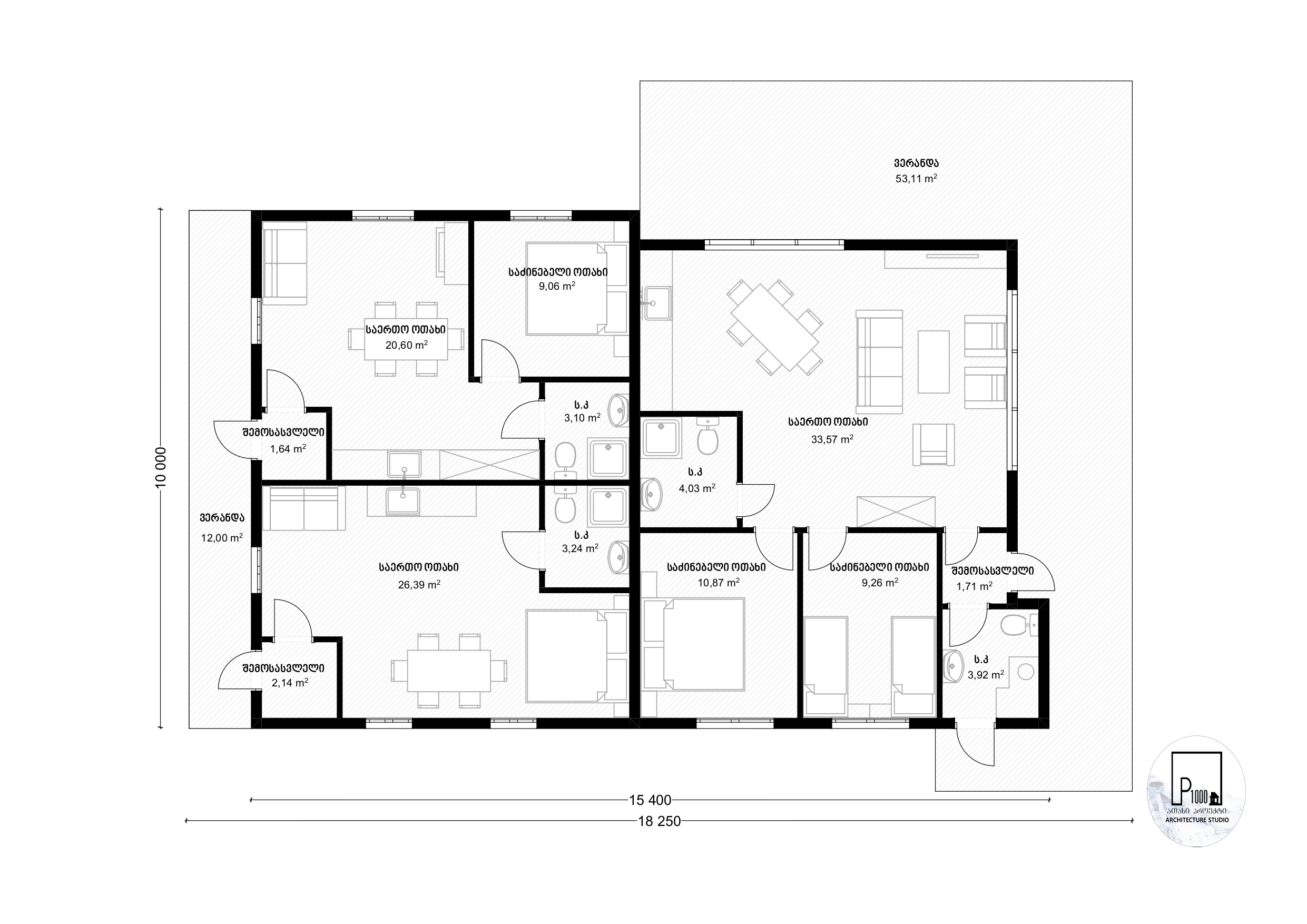 ​​​​​​​თანამედროვე ერთსართულიანი საცხოვრებელი/სააგარაკე ტიპის ინდივიდუალური სახლი, მოცემული პროექტი მოიცავს, ტოპოგრაფიას, გეოლოგიას,აზომვით ნახაზებს, მშენებლობის ნებართვის აღებას, პროექტის მომზადება-შეთანხმებას, კონსტრუქციულ ნახაზებს, ენერგო და წყალგაყვანილობის გეგმებს, შესაბამის მუნიციპალურ სამსახურებში თქვენს წარმომადგენლობას.