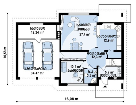 თანამედროვე ორსართულიანი საცხოვრებელი/სააგარაკე ტიპის ინდივიდუალური სახლი, მოცემული პროექტი მოიცავს, ტოპოგრაფიას, გეოლოგიას,აზომვით ნახაზებს, მშენებლობის ნებართვის აღებას, პროექტის მომზადება-შეთანხმებას, კონსტრუქციულ ნახაზებს, ენერგო და წყალგაყვანილობის გეგმებს, შესაბამის მუნიციპალურ სამსახურებში თქვენს წარმომადგენლობას.
